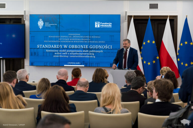 Zapewnienie realnej dostępności oraz właściwego reagowania instytucji publicznych na potrzeby osób z niepełnosprawnościami niewidocznymi i neuroróżnorodnością było kluczowym tematem posiedzenia Senackiego Zespołu poświęconego wdrożeniu projektu „Standardy w Obronie Godności”, realizowanego pod patronatem Ministerstwa Sprawiedliwości.