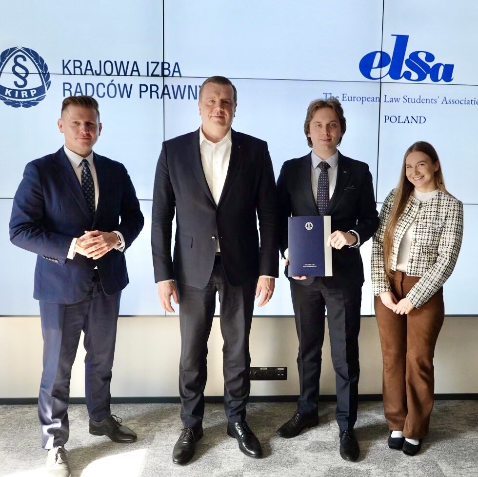 Krajowa Izba Radców Prawnych podpisała umowę o partnerstwie merytorycznym z Europejskim Stowarzyszeniem Studentów Prawa ELSA Poland. Porozumienie stanowi kolejny krok w działaniach samorządu radców prawnych na rzecz wspierania rozwoju młodych prawników oraz wzmacniania jakości edukacji prawniczej w Polsce.