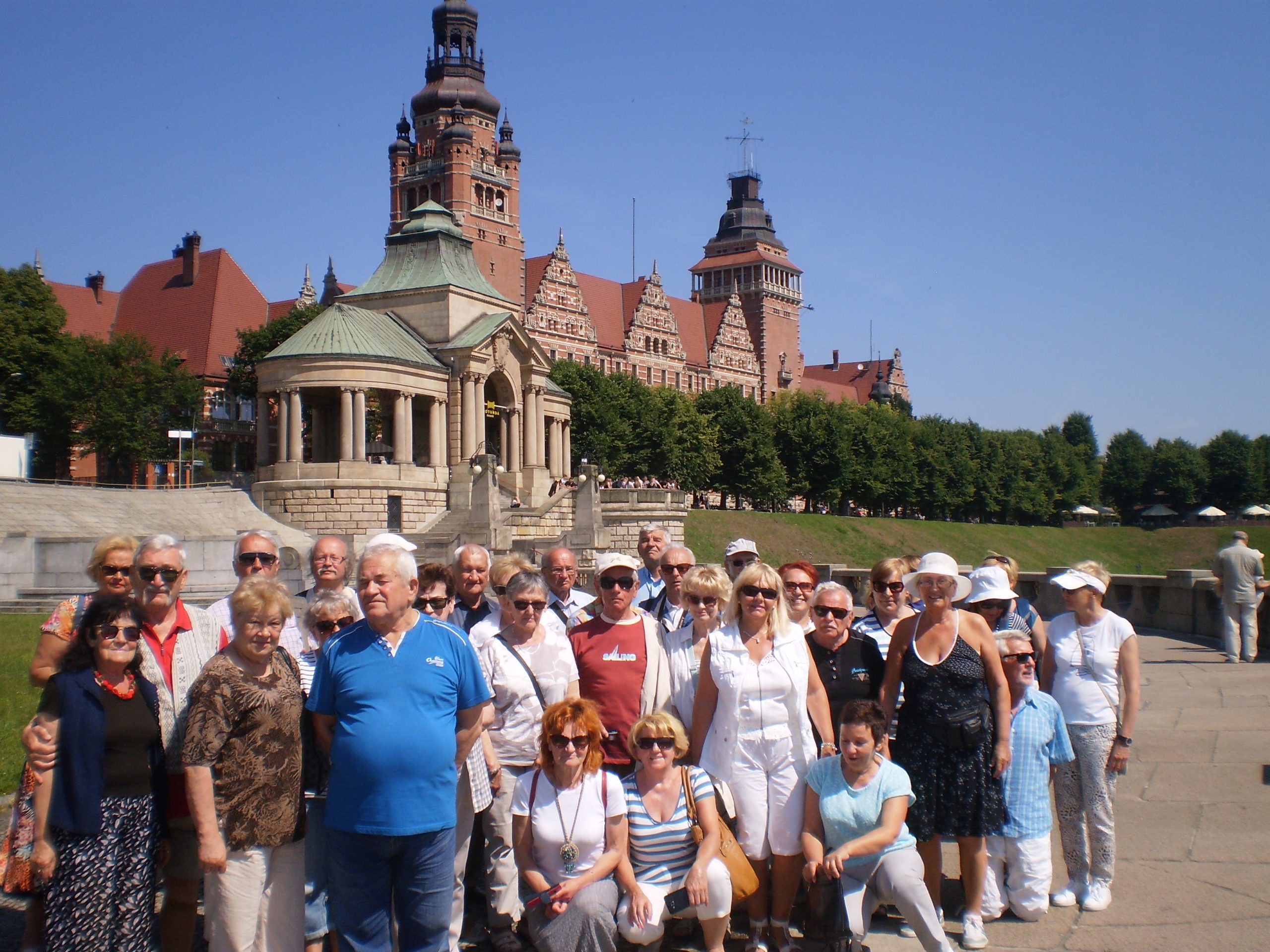 Program był bardzo interesujący, albowiem oprócz kąpieli słonecznych, spacerów piękną plażą, rozmów, żartów i spotkań towarzyskich poznawaliśmy okoliczne tereny. Dużą frajdę przyniosła podróż kolejką wąskotorową wzdłuż wybrzeża rewalskiego. Wysiadaliśmy na każdej stacji, zwiedzaliśmy miejscowość przy niej położoną, a następnym kursem jechaliśmy dalej, aby znowu wysiąść na następnej stacji i zwiedzić następną miejscowość. Byliśmy w ten sposób w Niechorzu, gdzie zwiedziliśmy latarnię morską, Motylarnię, Muzeum Klocków Lego oraz Gabinet Figur Woskowych. Byliśmy też w Pogorzelicy podziwiając szeroką, piaszczystą plażę. Pogoda tego dnia sprzyjała, a więc radości było co nie miara. Innego dnia pojechaliśmy do Międzyzdrojów zapoznać się z Aleją Gwiazd no i pochodzić po słynnym molo. Po drodze byliśmy na najwyższym klifie w Polsce – Gosań i obeszliśmy pieszo Jezioro Turkusowe. Nieobce nam też Świnoujście i rejs statkiem po zatoce pomorskiej. Było też zwiedzanie Kamienia Pomorskiego, no i koncert organowy w słynnej Katedrze tego miasta. Odwiedziliśmy też Osadę Wikingów na wyspie Wolin.